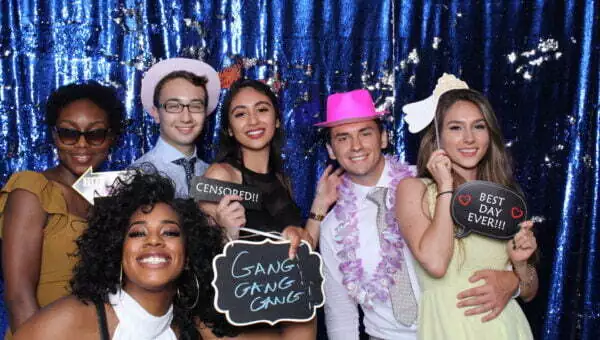With the multitude of backdrops available for the photo booth we can easily compliment your decor. Choose from glistening sequins backgrounds in gold, rose gold, blue silver, white, and black. We also have a large selection of premium backdrops